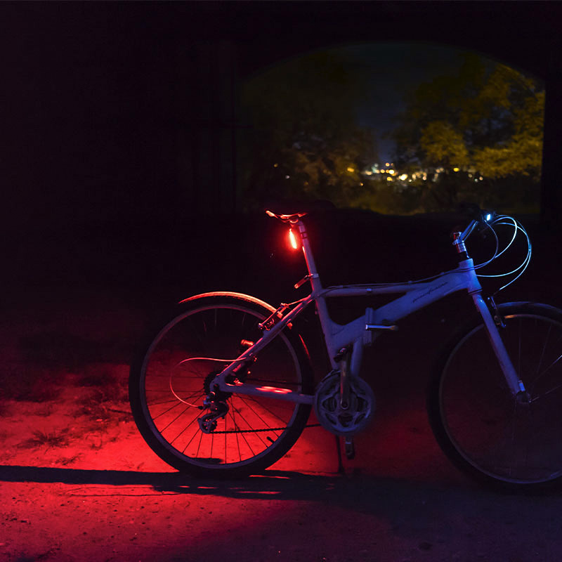 - 6 režimů svícení: červená 100% - červená 50% - modrá 100% - červené blikání - červené SOS blikání - barevné blikání