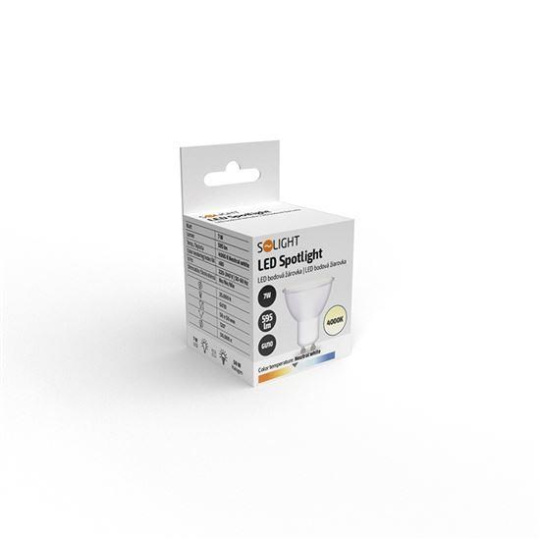 Solight LED žárovka, bodová, 7W, GU10, 4000K, 595lm, bílá