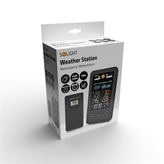 Solight meteostanice, barevný LCD, vnitřní/venkovní teplota a vlhkost, tlak, RCC, černá