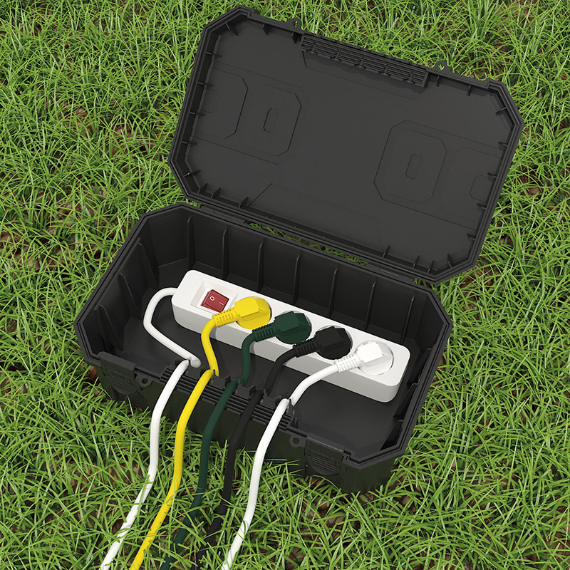 Voděodolná a prachotěsná krabice třídy IP54 je bezpečná ochrana před poškozením kabelových spojení. Uschová prodlužovací přívody, napájení nebo rozbočení anténních a internetových rozvodů, vánočního osvětlení, časové spínače, apod. Zabraňuje oxidaci konektorů a zkratům vlhkem, chrání před nečistotami. Uzamykatelné víko chrání kabelové spoje před rozpojením nebo poničením cizími osobami. Lze použít s elektrickými zařízeními ve venkovním i vnitřním prostředí.