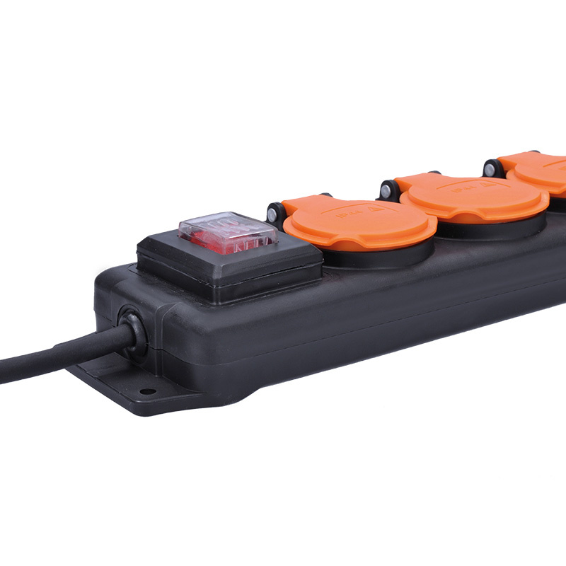 Solight prodlužovací přívod IP44, 4 zásuvky, gumový kabel, vypínač, venkovní, 10m