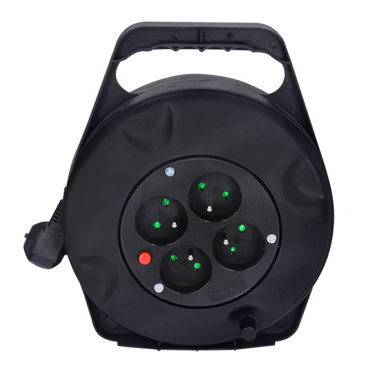 Kabel z PVC s vodiči o průřezu 3×1,5 mm2 je vhodný pro použití v interiéru nebo v suchých, chráněných prostorách. Buben je vybaven čtyřmi zásuvkami s dětskými pojistkami, navíc i tepelnou pojistkou, která přeruší napájení v případě přetížení nebo při použití bez úplného odvinutí kabelu.