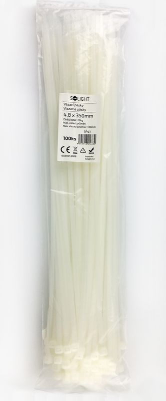 Solight vázací nylonové pásky, 4,8 x 350mm, natural, 100ks