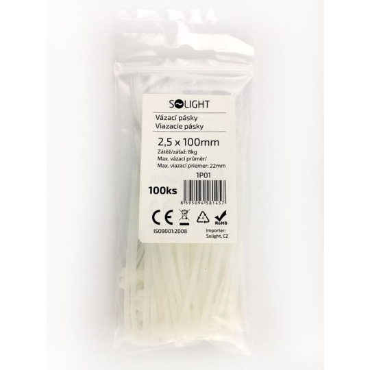 Solight vázací nylonové pásky, barva natural, 100ks, 2,5 x 100mm