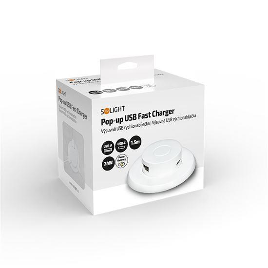 Solight výsuvná nabíječka USB A+C 24W PD, bílá