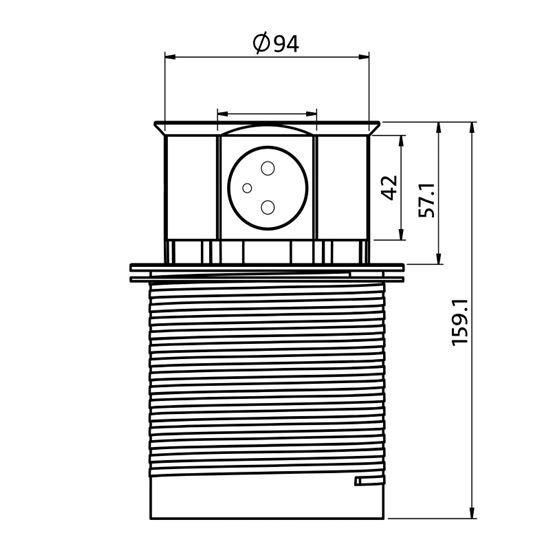 výška výsuvné části nad stolem: 58mm; výška části pod stolem: 100mm