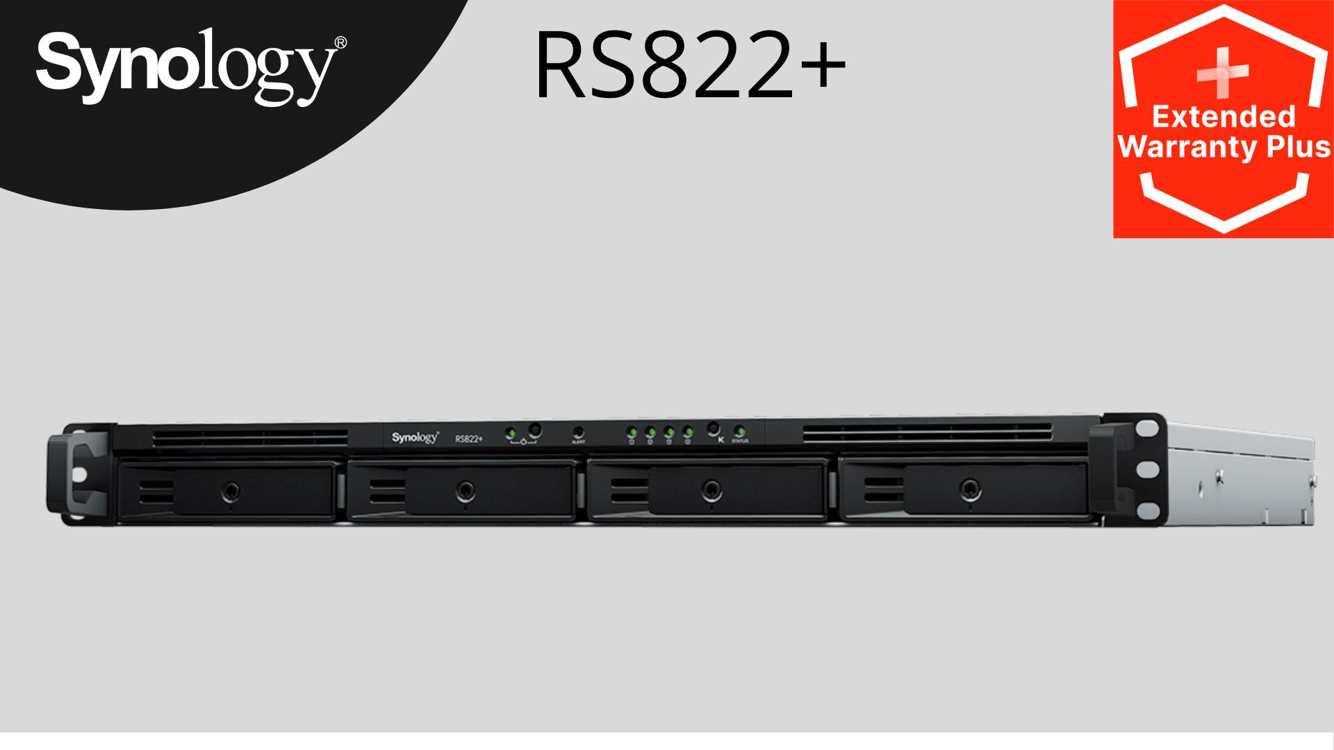 Kompaktní, čtyřšachtové 1U zařízení Synology RackStation RS822+ s možností rozšíření úložiště a připojení k síti, používající výkonný operační systém Synology DiskStation Manager (DSM), je ideálním řešením úložiště typu Edge pro pobočky a malé a střední firmy.