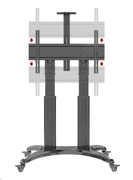 Televizní stojan na videokonference NB AVF1800B Profesionální stojan na televize a monitory 50-90", ideální na videokonference nebo prezentace, výškové nastavení 110-165cm, polička na kameru, pojízdný, nosnost 56,8kg Televizní stojan ideální na videokonference nebo prezentace - vhodný pro zavěšení televizorů nebo monitorů s úhlopříčkou 50-90" a nastavení do požadované výšky od 110cm do 165cm (výška po střed obrazovky). Pro umístění kamery je na stojanu polohovatelná polička s rozměry 255x125mm a nosností 4,5kg. Stojan vyniká kvalitou, designem a snadným nastavením. Veškerou kabeláž je možné vést skrytě tělem stojanu. Vyroben je z hliníku, kolečka jsou osazena brzdou. Barevné provedení černé, záruka 5 let. Televizní stojan na videokonference NB AVF1800B Technické údaje: nosnost 56,8kg na televize a monitory 50-90" podporuje VESA standardy 200x100 až 800x400 plynulé nastavení rozsahu výšky 1100 - 1650mm (výška od podlahy po střed obrazovky) horní polička na kameru 255x125mm, nosnost 4,5kg systém pro skryté vedení kabeláže hliníková konstrukce i podstava profesionální pojezdová kolečka, všechny jsou osazeny brzdou nejvyšší kvalita, snadné nastavení, maximální bezpečnost barevné provedení černé záruka 5 let Stojan na videokonference, přednášky a propagace s nastavením výšky Tv 110-165cm NB AVF1800BStojan na televize a monitory NB AVF1800B je dodáván včetně horní poličky na kameru s nosností 4,5kg Tv stojany AVF1800B podporují VESA standardy: VESA 200x100 VESA 200x200 VESA 300x200 a 200x300 VESA 300x300 VESA 400x200 a 200x400 VESA 400x300 a 300x400 VESA 400x400 VESA 600x200 VESA 600x300 VESA 600x400 VESA 800x400 VESA 800x500 Stojany na Tv NB AVF1800B jsou ideální pro využití na videokonferencích, přednáškách nebo propagacích. Své uplatnění našli především ve firmách, školách, na výstavách ale i pro soukromé účely v domácnostech..