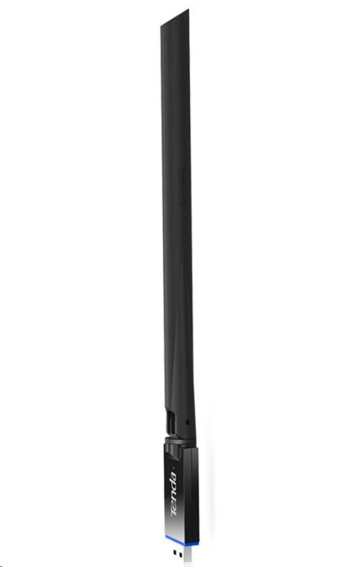 Bezdrátový Wi-Fi 6 USB adaptér U11 Pro společnosti Tenda Technologies vás již na první pohled zaujme velmi výkonnou anténou o zisku 6 dBi, díky které je dosah Wi-Fi připojení opravdu maximální. Podporuje standard 802.11ax/b/g/n v pásmu 2,4 a 5 GHz, který umožňuje při komunikaci rychlostí až 886 Mb/s (2,4GHz: 286 Mb/s. 5GHz: 600 Mb/s).