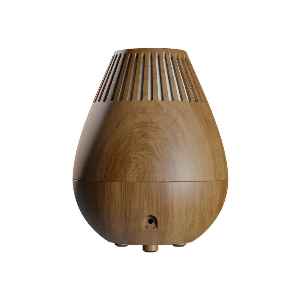 Minimalistický design a provedení v imitaci dřeva zapadne do každého interiéru. Na difuzéru najdete dvě tlačítka pro ovládání režimů tvorby páry a výběr LED podsvícení. Doplnění vody je snadné, stačí pouze sejmout horní kryt a dolít vodu do nádržky. V případě vyčerpání vody se přístroj sám automaticky vypne, aby se předešlo poškození.