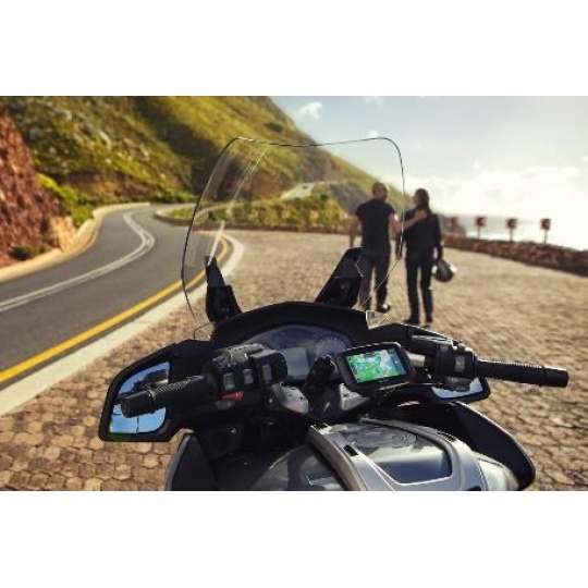 Otočte zařízení do pozice na výšku a uvidíte další zatáčky, které vás na trase čekají, takže se na ně můžete připravit. Inovativní otočný držák tohoto navigačního zařízení pro motocykly umožňuje snadné přepínání mezi zobrazením na šířku a na výšku.