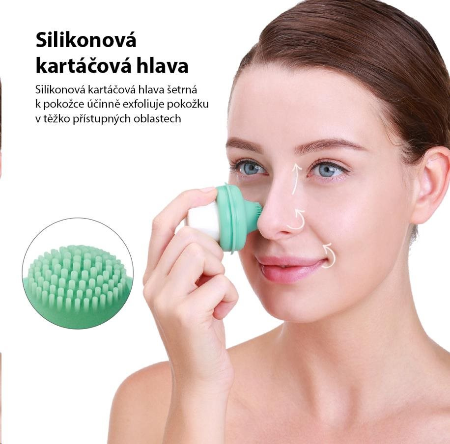 • Silikonová hlavice kartáčku ve tvaru kapky, speciálně navržená pro čištění nosu a čela.