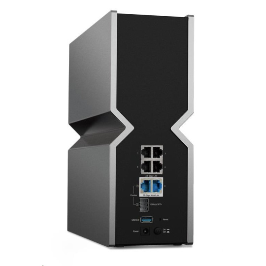 - Dva 10G porty: 1× 10 Gb/s kombinovaný ethernetový/optický port WAN/LAN + 1× 10 Gb/s WAN/LAN port + 4× 2.5 Gb/s porty + 1× USB 3.0 port zajišťují maximální flexibilitu a zvýšenou propustnost.§