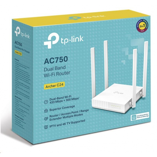 TP-Link Archer C24 WiFi5 router (AC750, 2,4GHz/5GHz, 4x100Mb/s LAN, 1x100Mb/s WAN)