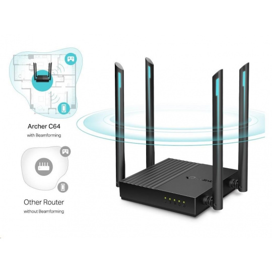 - Router Archer C64 umožňuje připojit více zařízení najednou a souběžně přenášet data díky podpoře dvou pásem 2,4 GHz a 5 GHz. Pásmo 2,4 GHz poskytuje spolehlivé připojení pro odesílání e-mailů, prohlížení webových stránek a další jednoduchou aktivitu. Pásmo 5 GHz nabízí rychlost až 867 Mb/s, která je vhodná pro činnosti náročné na přenos dat, jako je například streamování videa a hraní her on-line.† Díky připojení bez prodlev či zadrhávání už nikdy o nic nepřijdete.