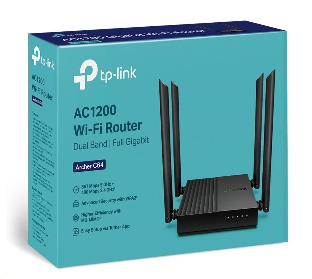 TP-Link Archer C64 OneMesh/EasyMesh WiFi5 router (AC1200, 2,4GHz/5GHz, 4xGbELAN, 1xGbEWAN)