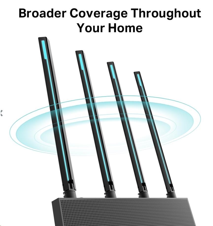 | WiFi Range | 3 Bedroom Houses 4× Fixed High-Performance Antennas Multiple antennas form a signal-boosting array to cover more directions and large areas Beamforming Concentrates wireless signal strength towards clients to expand WiFi range |