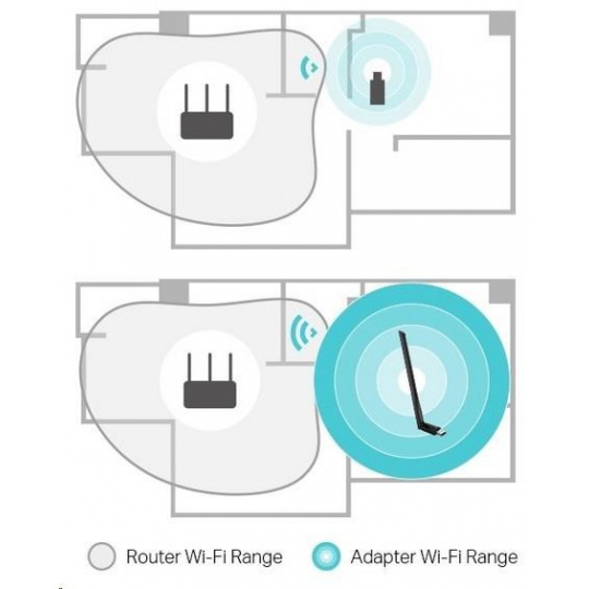 - Vysoce zisková anténa: Anténa s vysokým ziskem až 5dBi výrazně zvyšuje sílu příjmu a přenos signálu USB adaptéru