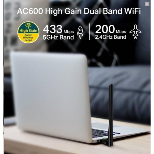 TP-Link Archer T2U Plus WiFi5 USB adapter (AC600,2,4GHz/5GHz,USB2.0)