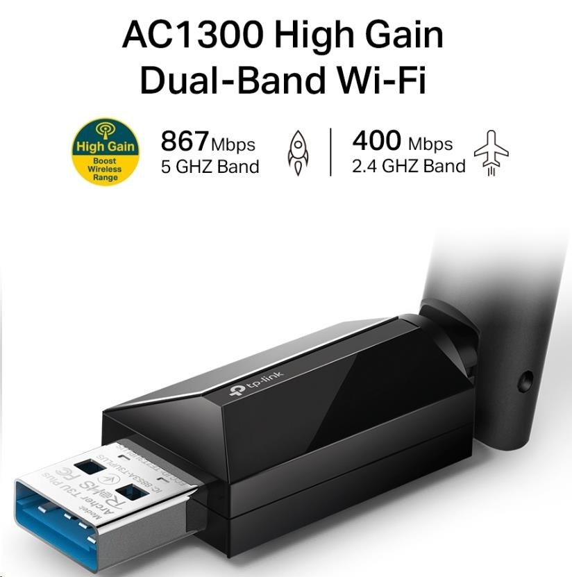 TP-Link Archer T3U Plus WiFi5 USB adapter (AC1300,2,4GHz/5GHz,USB3.0)