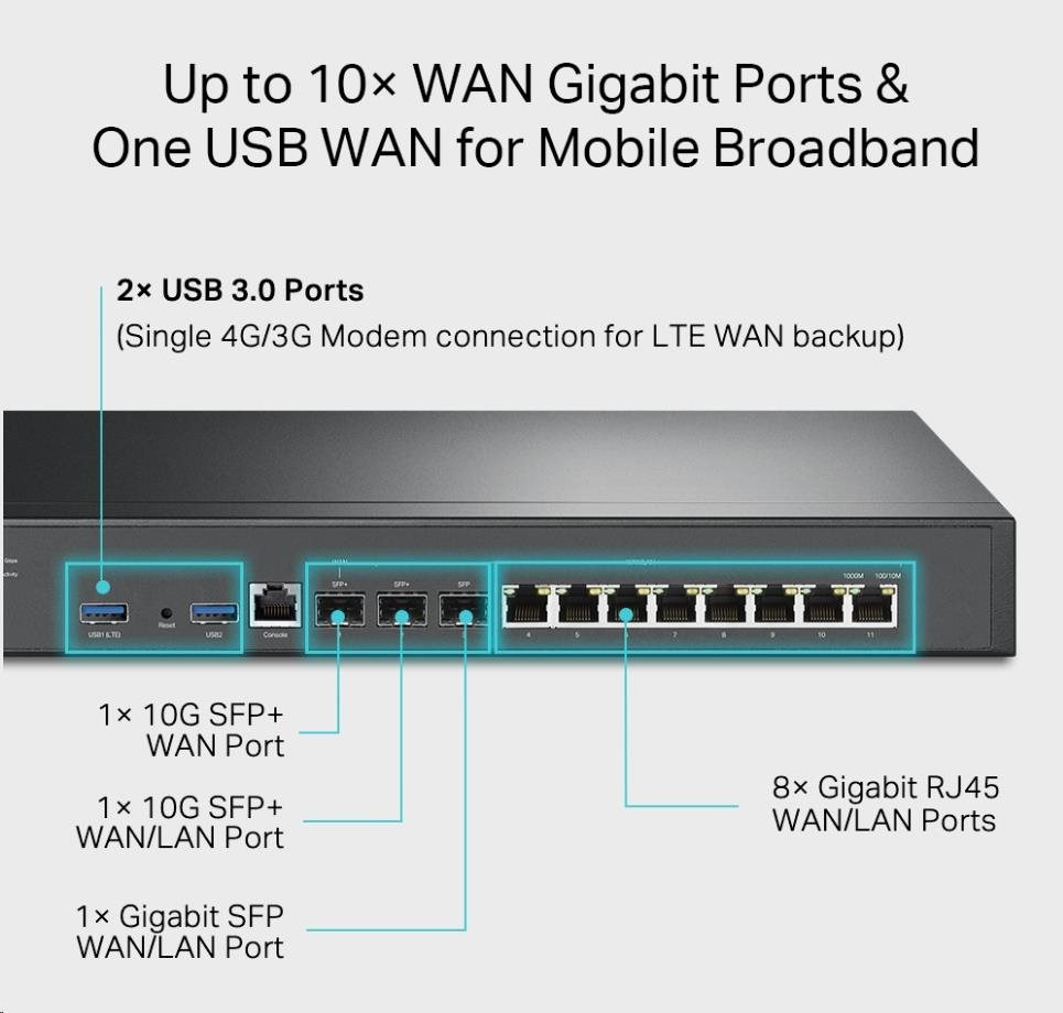 TP-Link ER8411 OMADA VPN router (2xSFP+(1xWAN,1xWAN/LAN),1xSFP WAN/LAN,8xGbELAN/WAN,1xConsole,2xUSB3.0)