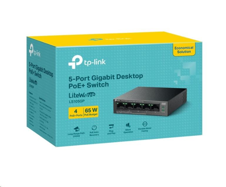TP-Link LiteWave switch LS105GP (5xGbE, 4xPoE+, 65W, fanless)