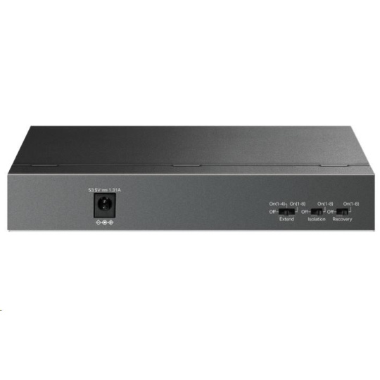 Rozpočet 63 W PoE: Osm 10/100 Mbps PoE kompatibilních portů s 802.3af/at se snadno připojují a napájejí pevná zařízení, jako jsou IP kamery, přístupové body a IP telefony, pomocí jediného kabelu. Každý port PoE podporuje výstup až 30 W PoE.