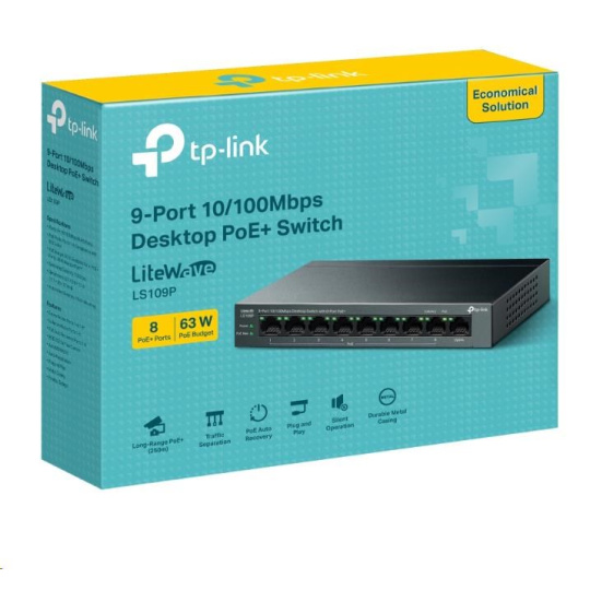 TP-Link LiteWave switch LS109P (9x100Mb/s, 8xPoE+, 63W, fanless)