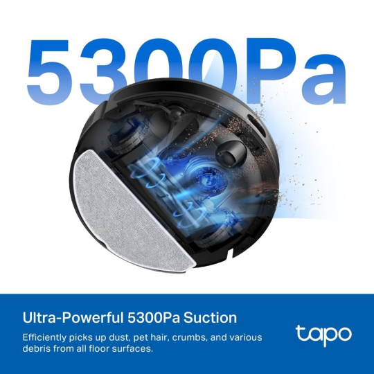 - Mimořádně výkonné sání 5300 Pa: Zajišťuje, že robot účinně sbírá prach, zvířecí chlupy, drobky a různé nečistoty ze všech podlahových ploch a zanechává váš domov bez poskvrnky.