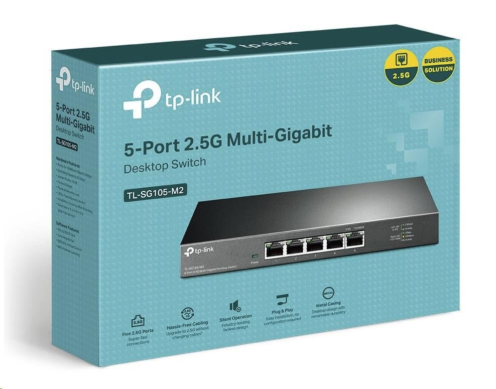 - Firma TP-Link přichází s novou řadou Multi Gigabitových switchů, které dokážou navázat až 2.5Gbps link na každém portu. Tento základní model TL-SG105-M2 bez managementu v kovovém šasi má má celkově 5 metalických portů s rychlostí 100M/1G/2.5G, indikační LED na každém portu a jeden DC konektor pro napájení switche na zadní straně (12V / 1.5A).