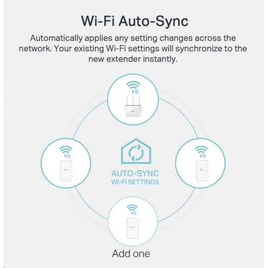 • Automatická synchronizace Wi-Fi – jednoduše zkopírujte nastavení Wi-Fi sítě routeru a použijte všechny změny v celé zabezpečené síti Powerline s funkcemi klonování a přesunu Wi-Fi.
