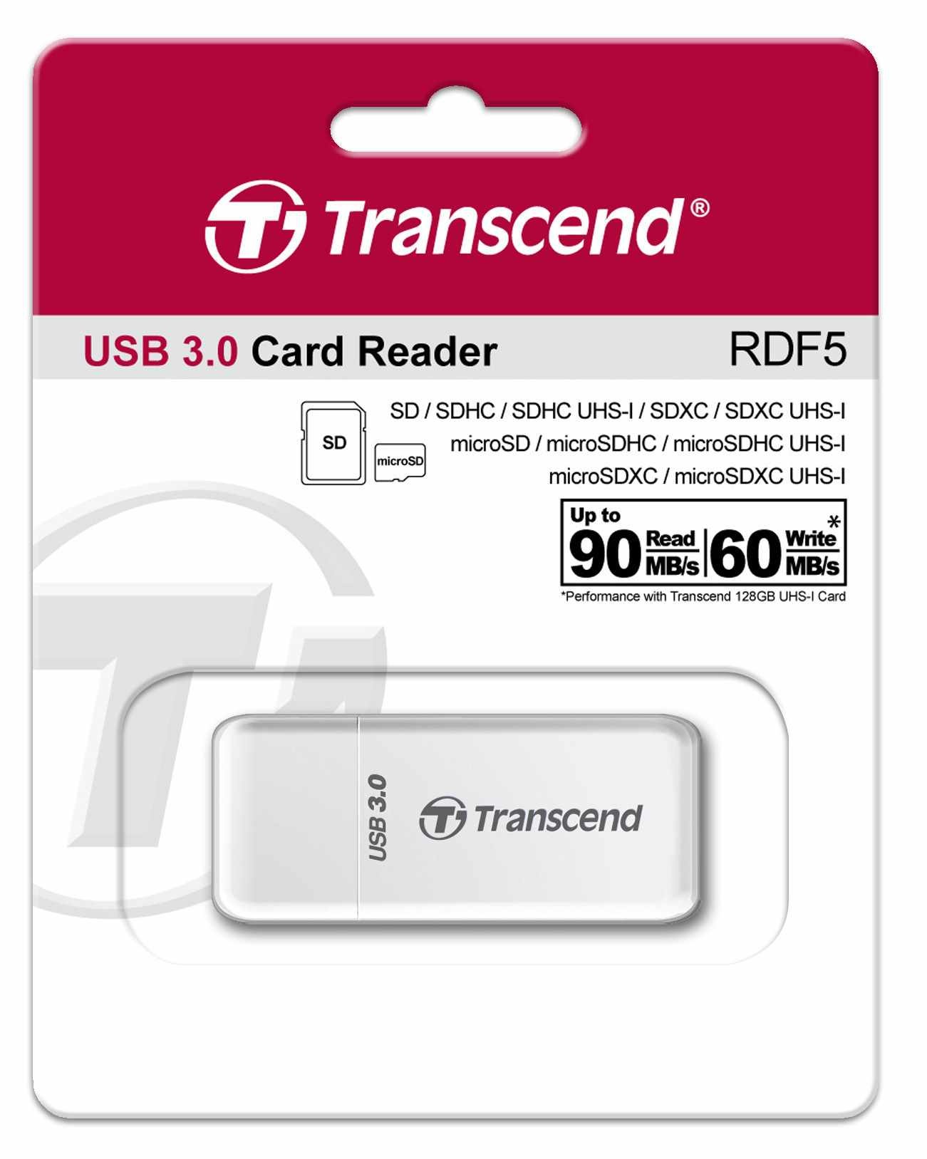 TRANSCEND Card Reader F5, USB 3.0, White