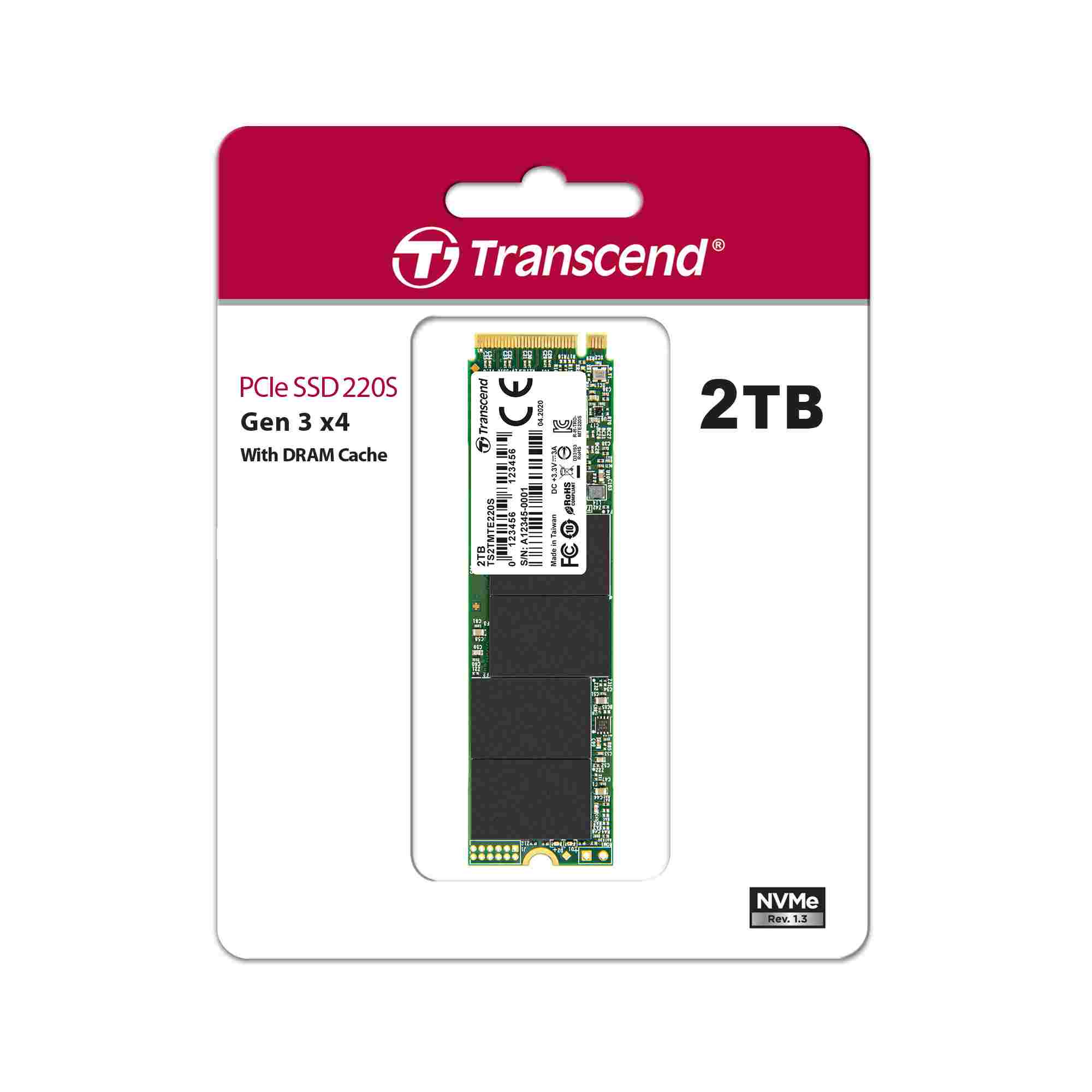TRANSCEND SSD 220S 2TB, M.2 2280, PCIe Gen3x4, NVMe, M-Key, 3D TLC, with Dram