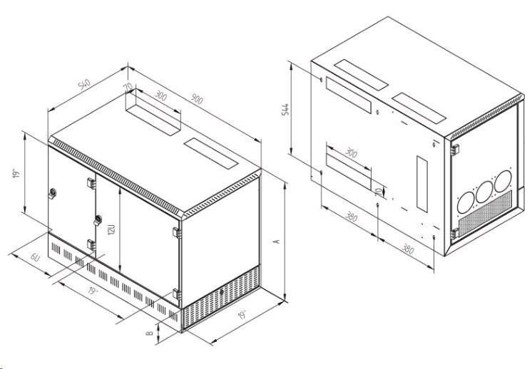 TRITON 19" rozvaděč 12U/400mm - 3 sekce 6U+12U+2U, 900x540mm