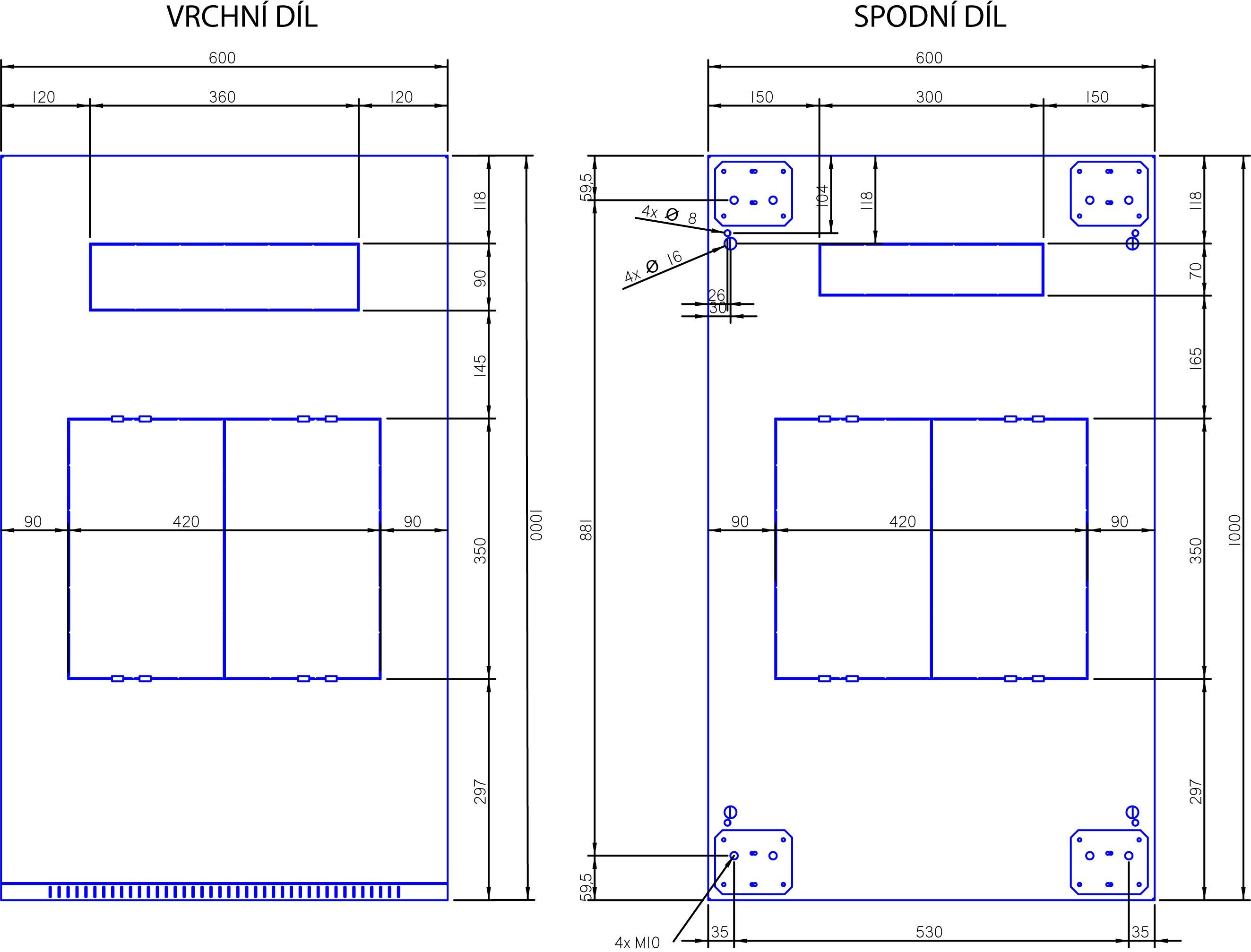 Dveře pro ventilační jednotky U tohoto typu rozvaděče je možno objednat speciální plechové dveře s přípravou pro montáž ventilačních jednotek RAx-CH-X0x-X3. Více informací naleznete v sekci Aktivní chlazení.