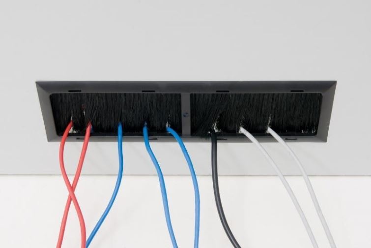 Kabelové vstupy v zadní části rozvaděče jsou zakryty vylamovacími záslepkami. Proti pronikání prachu je možné kabely v otvoru utěsnit záslepkou s kartáčem. K ochraně kabelů před poškozením slouží plastový rámeček (obojí je součástí příbalu rozvaděče).