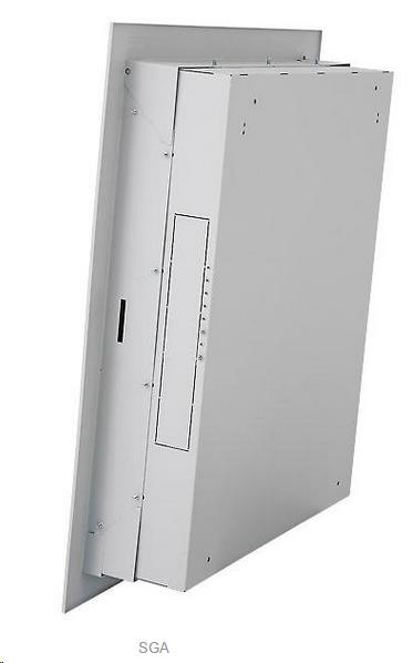 Hybridní domovní rozvaděč SHA - IP20, nosnost 30 kg. Rozvaděč je určen k montáži pod omítku (model SGA) SVISLÁ MONTÁŽ V horní polovině je skříň vybavena posuvnými držáky pro osazení 19“ patch panely, případně jističovou vanou. VODOROVNÁ MONTÁŽ Na bocích v dolní polovině skříně jsou připraveny držáky pro 19“ zařízení. VYLAMOVACÍ ZÁSLEPKY Ve stropě a dně skříně jsou připraveny kabelové vstupy kryté vylamovacími záslepkami..