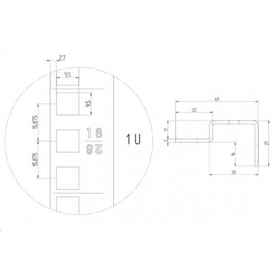 TRITON Vertikální lišta 45U, cena za 1ks