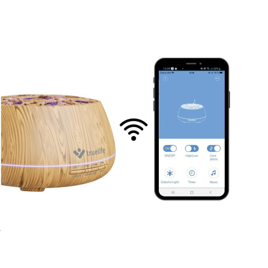 Difuzér lze připojit na WiFi síť a ovládat prostřednictvím aplikace TrueLife Smart.