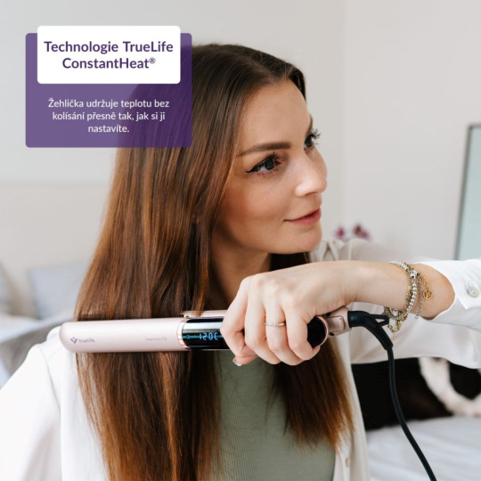 Technologie TrueLife ConstantHeat® zajišťuje, že teplota po celou dobu žehlení vlasů zůstává stálá. Vlasy jsou tak chráněny před poškozením.