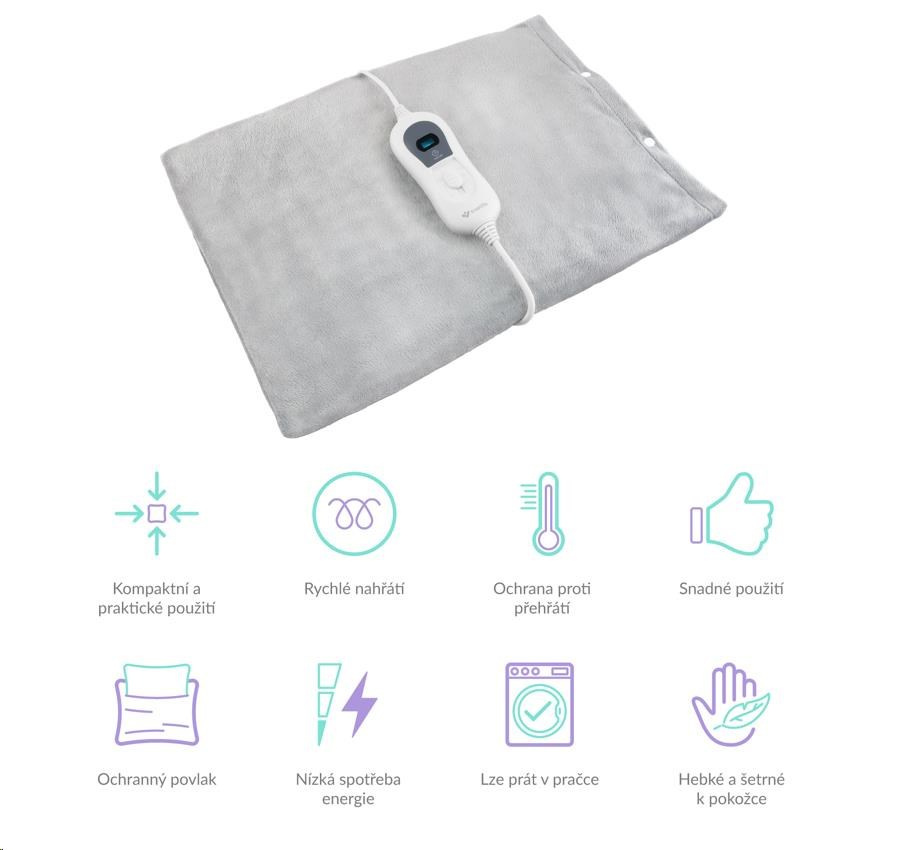 Ovládání dečky zvládne úplně každý. Pomocí ovladače si ze tří úrovní vyberete teplotu, která vám vyhovuje. Pomocí funkce Fast Heat se dečka rychle a rovnoměrně nahřeje a příjemné a ulevující teplo se tak dostaví mnohem rychleji, než kdybyste vytápěli celou místnost, obzvlášť v chladnějších podmínkách. Deku i povlak můžete bez obav prát v pračce.