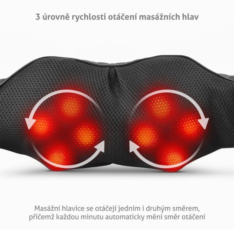 Otáčení masážních hlavic probíhá ve směru tam a zpět, každou minutu se přitom automaticky mění směr.