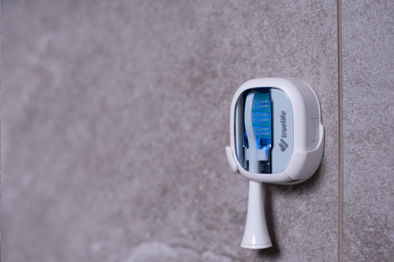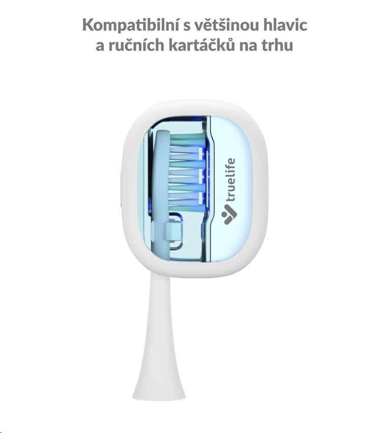 UV sterilizátor od TrueLife je malý přístroj, který efektivně ničí bakterie usazující se na hlavicích zubních kartáčků. Díky UV-C záření o vlnové délce 200-275 nm proniká k membránám bakterií, virů a plísní a zabraňuje jejich šíření. Je kompatibilní s většinou hlavic elektrických i manuálních kartáčků na trhu.