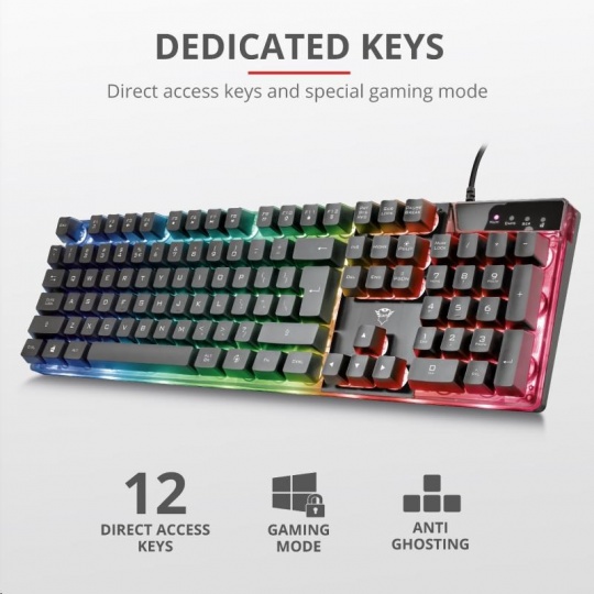 Typ klávesnice:Membránová; Rozhraní klávesnice:Drátová USB; Lokalizace klávesnice:CZ/SK; Výbava klávesnice:Podsvícené klávesy, Multimediální klávesy.... více