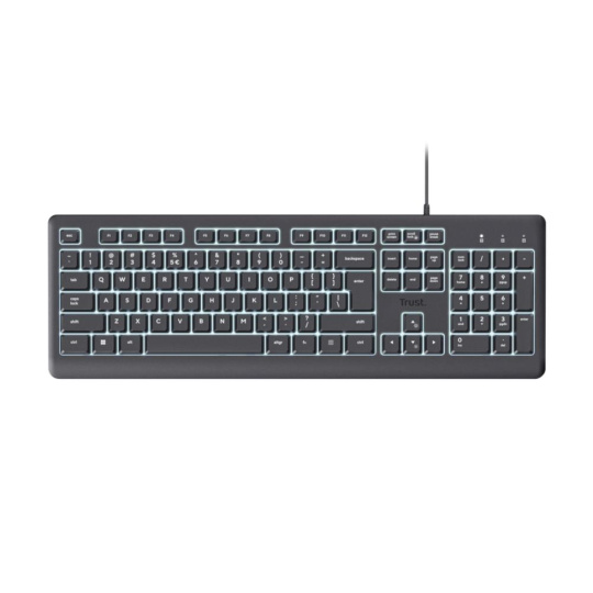 TRUST klávesnice Primo, Membránová, USB-C, Podsvícená, černá
