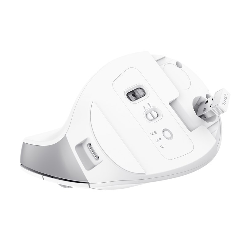 TRUST myš Bayo+ Ergonomická vertikální myš, Bezdrátová, bílá