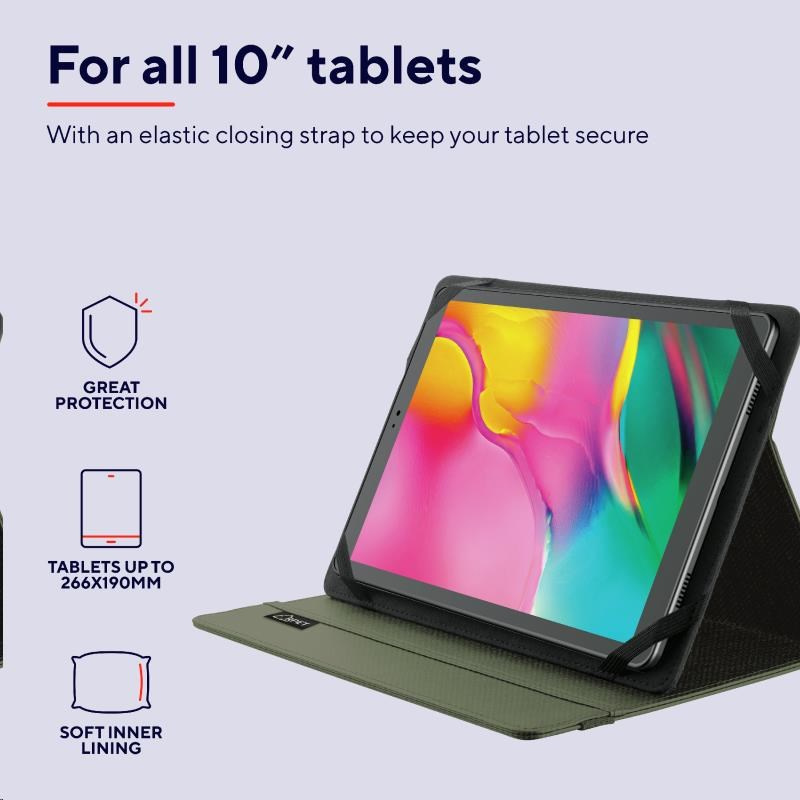 Univerzální pouzdro se stojánkem, které ochrání váš 10palcový tablet před škrábanci Vlastnosti: - Vhodné pro většinu 10palcových tabletů - Chrání tablet před škrábanci - Stojánek - Měkký vnitřek - Elastický uzavírací pás Obsah balení: - Pouzdro se stojánkem pro 10palcové tablety Požadavky: - 10palcové tablety do velikosti 266x190 mm.