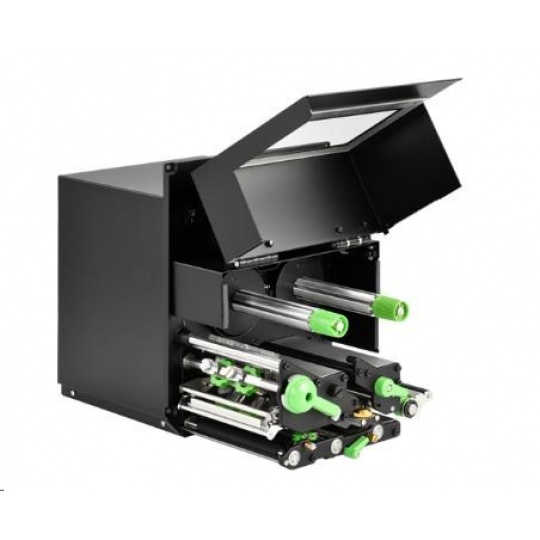 label printer (Print Engine), thermal transfer, 8 dots/mm (203 dpi), media width (max.): 114 mm, print width (max.): 104 mm, ribbon core: 25,4mm, speed (max.): 356 mm/s, USB, RS232, parallel, Ethernet, TSPL, RAM: 512 MB, Flash: 512 MB, display (colour), real time clock, Black Mark Sensor, Gap Sensor, incl.: cable (USB), power supply unit, power cable, Treiber CD, QSG.