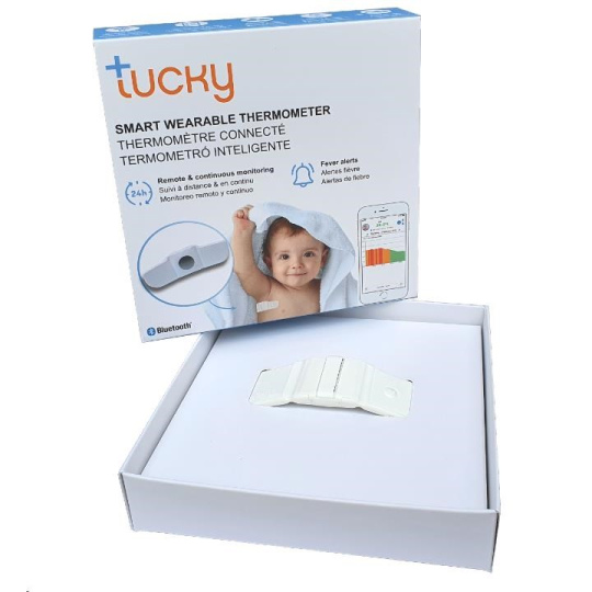 TUCKY – chytrý teploměr a monitor polohy přináší řešení této situace. Je certifikovaný pro medicínské použití, jednoduše ho nalepíte vašemu malému pacientovi pod pravou paži a TUCKY bude přesně měřit jeho teplotu každou minutu a měření bude posílat na vaše iOS / Android zařízení. Teplotu tak můžete neustále monitorovat, anebo se můžete spolehnout na automatické upozornění až když teplota dosáhne určitou hodnotu a neprodleně podat léky pro zrazení horečky. TUCKY tak vašemu dítěti ušetří nepříjemné trápení s horečkou a vám dodá víc klidu.