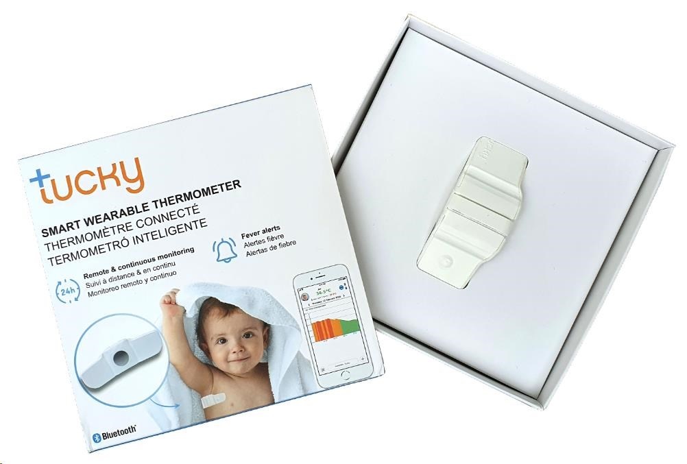 TUCKY – chytrý teploměr a monitor polohy přináší řešení této situace. Je certifikovaný pro medicínské použití, jednoduše ho nalepíte vašemu malému pacientovi pod pravou paži a TUCKY bude přesně měřit jeho teplotu každou minutu a měření bude posílat na vaše iOS / Android zařízení. Teplotu tak můžete neustále monitorovat, anebo se můžete spolehnout na automatické upozornění až když teplota dosáhne určitou hodnotu a neprodleně podat léky pro zrazení horečky. TUCKY tak vašemu dítěti ušetří nepříjemné trápení s horečkou a vám dodá víc klidu.